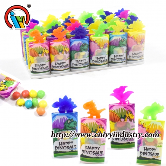 caramelo duro caramelo presionado en botella de dinosaurio. Una caja de cartón tiene 24 bandejas, una caja tiene 30 piezas.