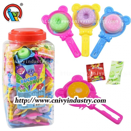 Caramelo de gelatina en forma de donut con caramelos explosivos + mermelada |