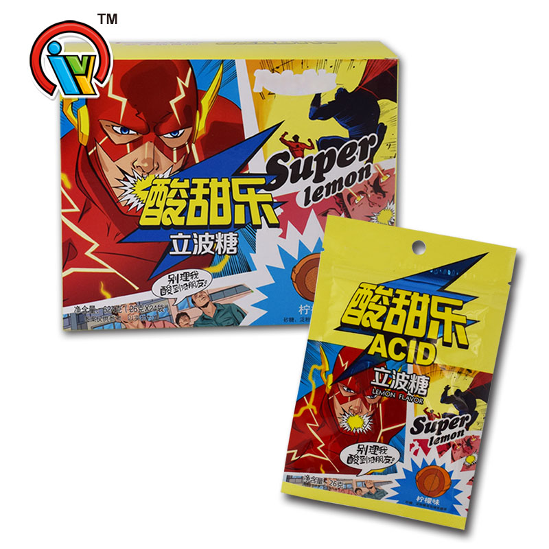 dulces súper amargos que tienen sabor a limón y sabor a piña.