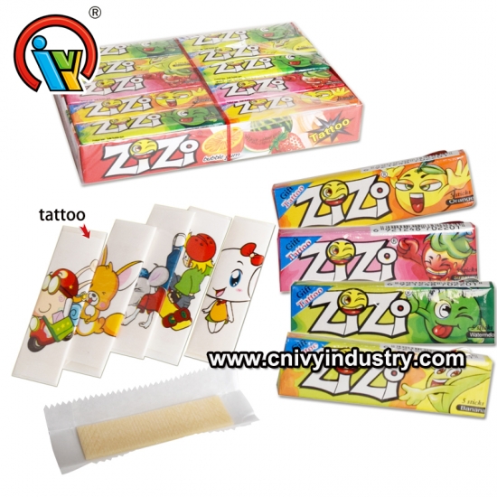 Sabor afrutado popular Chicle Con tatuaje . Una caricatura tiene 30 cajas, una caja tiene 20 piezas.